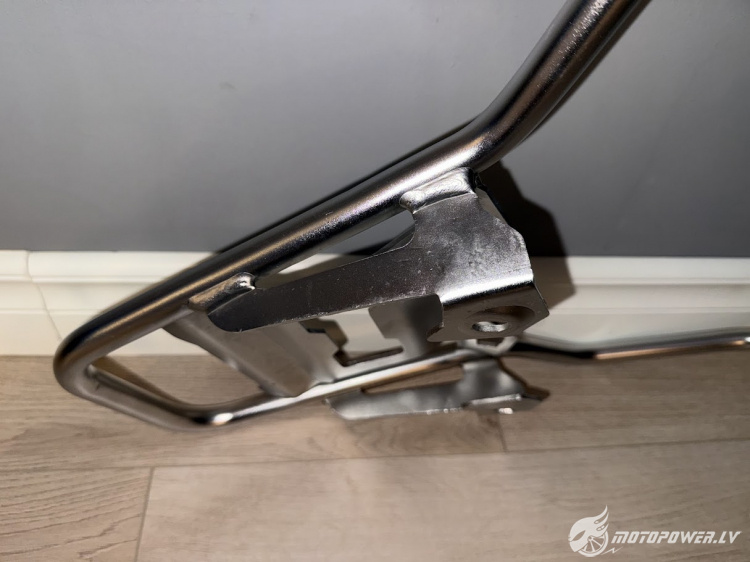 Bagāžas rāmis tika iegādāts ar nelielu defektu - saliektas stiprinājumu ausis. Tās pašlaik ir iztaisnotas, bet nedaudz ir pamanāmas locījuma pēdas (bildēs defekts ir redzams).