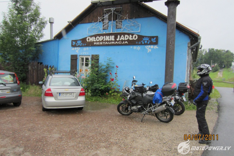 Pirmā diena: tika nobrauks ap 930 km kilometri aptuveni 14 stundās. Braucām diezgan uzmanīgi, jo kā tur citās zemēs ar CP Laiks sākumā bija +/- labs, ja neskaita īslaicīgu lietu uzreiz aiz PL robežas. Līdz Varšavai, kurai braucām apkārt, lietusgāzes praktiski nebija. Aiz Varšavas sākās lietus, lija, brīžiem gāza kā no spaiņa. Trases malā motelī arī pārnakšņojām. 100 zloti par numuru ar dušu, ateju, un guļamvietu.